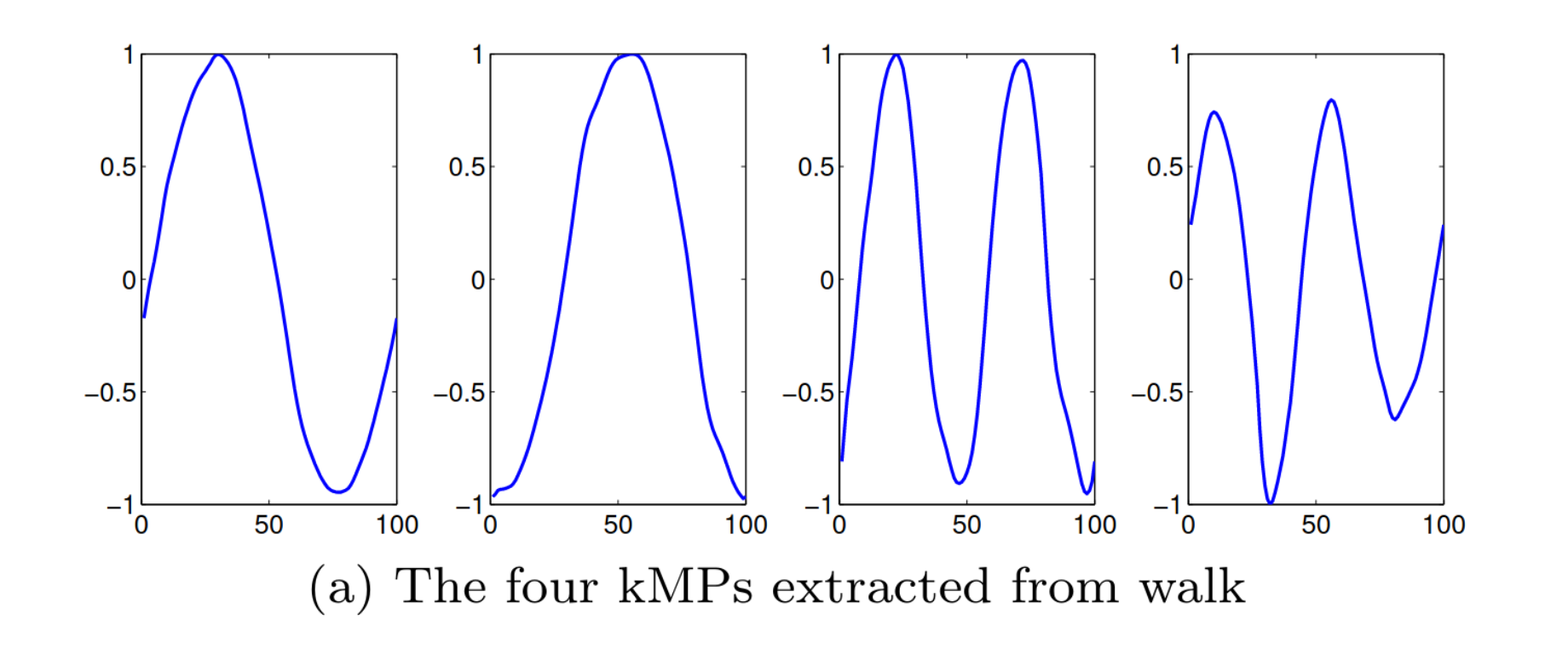 It turns out that complex movements performed by animals can be expressed as periodic signals with reduced dimensionality referred to as Kinematic Motion Primitives (kMPs). As this paper by Moro et al. shows, using principal component analysis applied to the joint data of a walking horse shows that 4 particular signals are enough to account for 97% of the variance in the joints in motion.