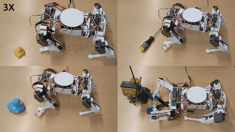 Something that’s been bothering me about four-legged robots for a while now is how can we make them useful. Many quadrupeds are marketed for inspection tasks, which a drone could likely do just as well. One thing a legged bot can do better than a drone though is environmental interaction - pushing buttons, pulling levers, carrying objects etc. For this task they are usually given arm payloads with grippers, which take up space and payload capacity, not to mention often costing as much as the robot itself.